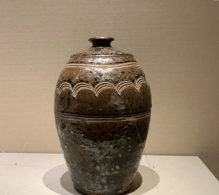 褐釉弦纹瓷瓶