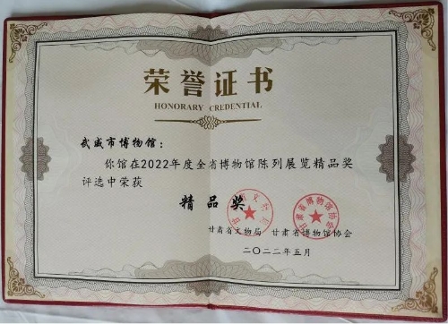 武威市博物馆“天梯山石窟专题展”荣获2022年度全省博物馆陈列展览“精品奖”