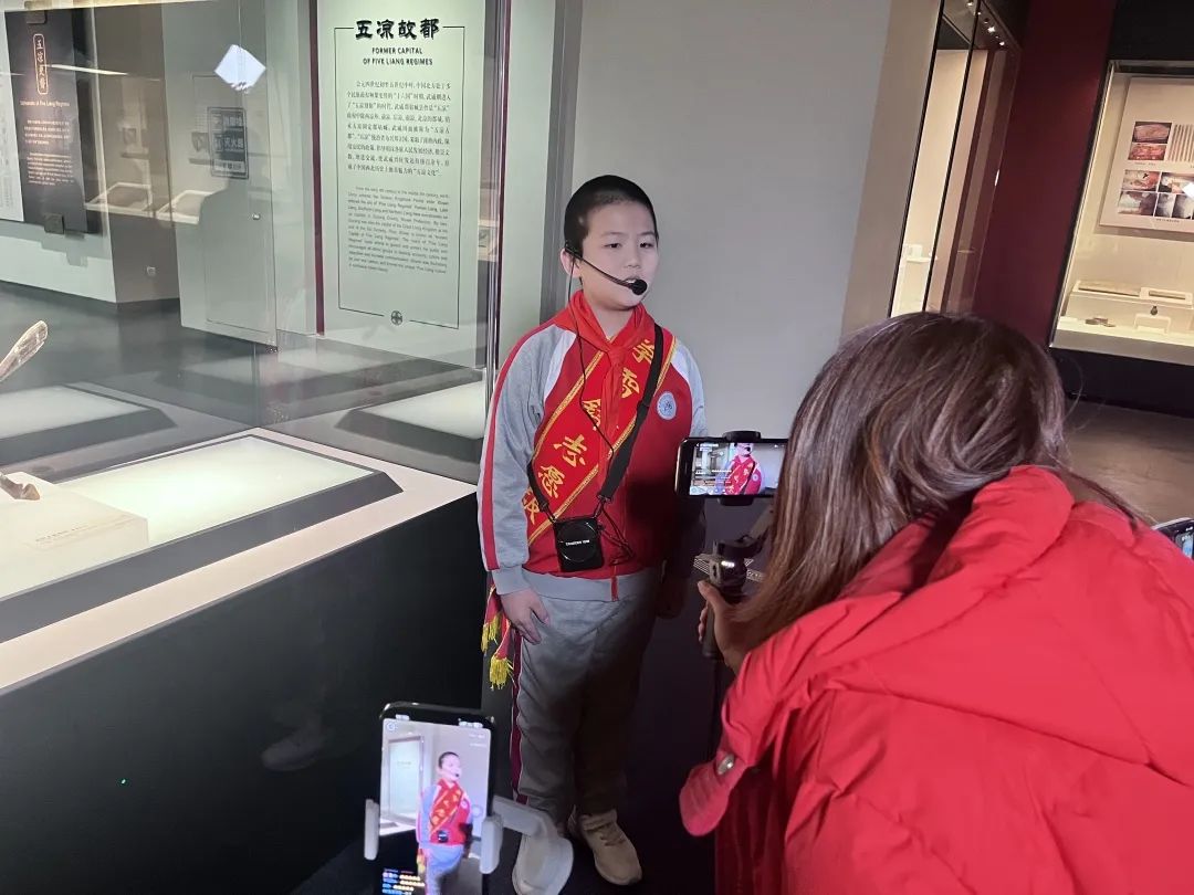 为认真贯彻落实党的二十大精神,引领广大青少年了解中华优秀传统文化,积极培育和践行社会主义核心价值观,实现博物馆青少年教育资源与学校教育的有效衔接,2023年1月14日,武威市博物馆联合武威师范学校附属小学,相聚云端,弘扬武威传统文化,讲述武威文物故事,开启了一场以“品读五凉文化,探寻家乡历史”为主题的线上研学之旅。本次活动采用线上钉钉和抖音两个平台同步直播的形式开展,将课堂搬到线上,由文物讲解、交流互动和朗诵表演三个环节构成,带领同学们云游武博,探索武威悠久的历史和深厚的文化。