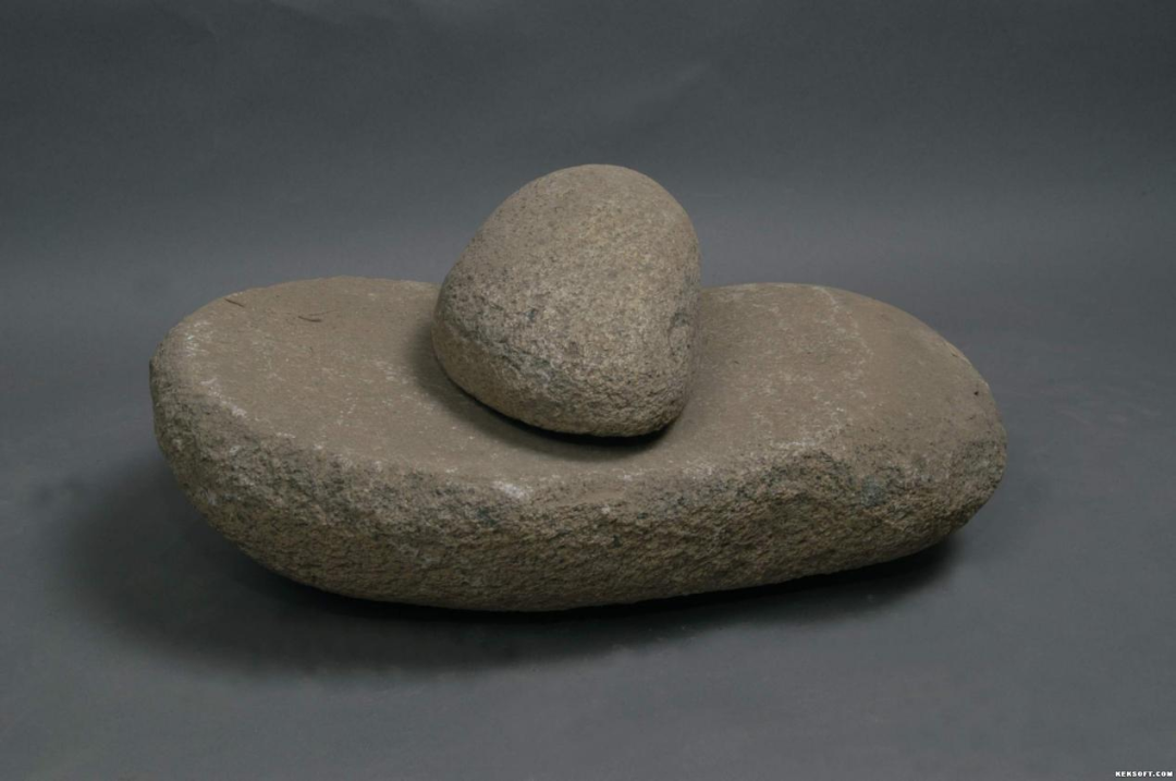 今天向大家分享研磨器,新石器时代,石器。砂石质。上下两块,上小下大。长条扁平形,一面磨光,一面自然石。保存完好,为国家三级文物,现馆藏于武威市博物馆。