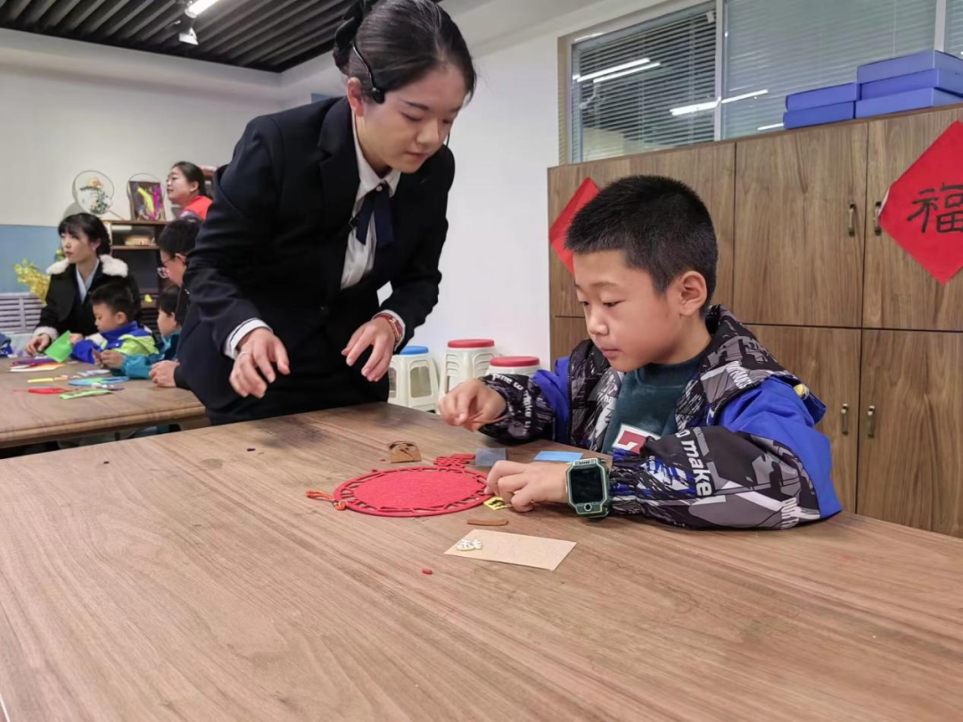 活动中,首先由讲解员带领家长和孩子们走进展厅,参观了基本陈列《河西都会 天马故乡》,重点讲解了我馆馆藏国宝级文物“王杖诏书令册简”和国家一级文物“彩绘漆木鸠”,让孩子们了解了汉代有关尊老养老的法律制度和鸠杖的故事。在“武博小课堂”,讲解员以图文并茂的方式介绍了重阳节的来历及重阳节这天秋游赏景、登高远眺、观赏菊花的传统习俗。让孩子们感受到了浓厚的节日氛围。课程结束后,孩子们进行手工体验制作重阳挂饰,在老师示范过重阳挂饰的制作方法后,孩子们兴致勃勃地自己动手体验。