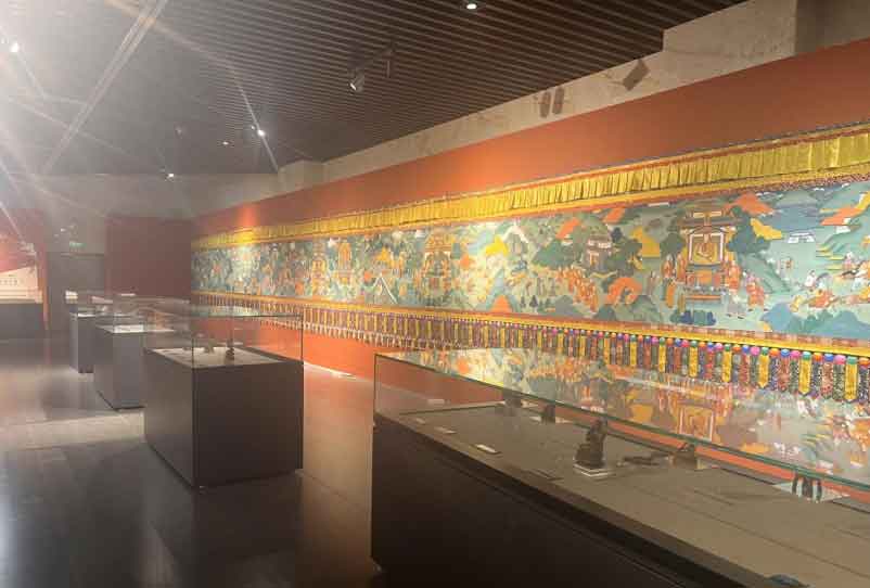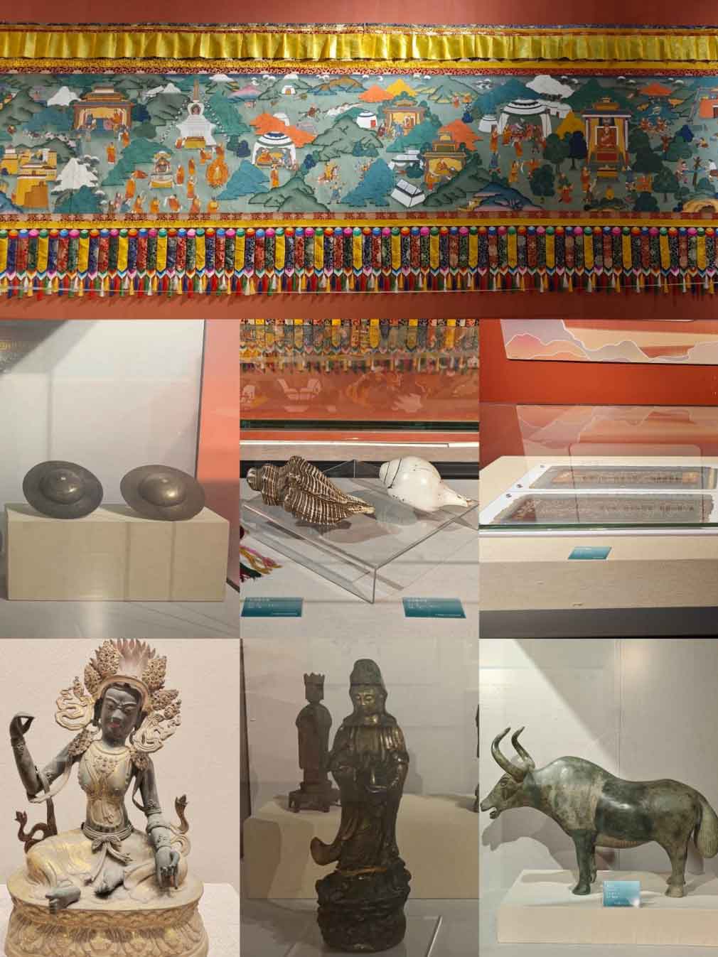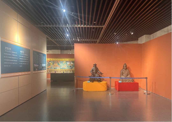 本次展览分为“凉州会盟”“藏韵遗珠”“神韵妙现”三个部分,共展出87件文物(藏品),其中我馆及天祝藏族自治县博物馆藏73件展品以“凉州会盟”“藏韵遗珠”两个篇章展陈内容,通过展示描绘“凉州会盟”重大历史题材的大型唐卡、高原之魂“铜牦牛”、佛造像、藏文大藏经经叶及其他相关文物等展品,再现了凉州会盟的历史经过和佛教在武威传播发展的事实依据,以及同时展出张掖市五县一区博物馆、大佛寺文研所收藏的14件佛造像“神韵妙现”内容,形成丝路沿线的文物联展,相辅相成,交相呼应。展览展期为两个月,在张掖市博物馆负一层临展厅展出。 700多年前,在武威白塔寺举行了“凉州会盟”,在中华民族关系史和汉、藏、蒙古民族史上写下了浓重的一笔,奠定了西藏归属中央政府行政管辖的基础。今天,“凉州会盟”已写进中学历史教材。博物馆作为铸牢中华民族共同体意识教育基地,应当努力讲好“凉州会盟”这一故事。 中华民族自古就是多元一体的大家庭,各族人民在千百年的历史进程中,不仅创造了灿烂的中华文化,更是形成了以爱国主义为核心的民族精神,有着一脉相承的价值追求。以史为鉴,认识民族团结的重要性,铸牢中华民族共同体意识,促进民族团结,树立文化自信,为新时代“一带一路”建设提供文化支持。 金张掖、银武威。武威和张掖是河西走廊的重要节点城市,位置相邻相近,均有着丰富的历史文化资源,此次联合办展是为了深入贯彻执行习近平总书记的讲话精神,积极培育中华民族共同体意识,也为我们进一步交流合作提供了广阔空间,相信两座城市今后在文博领域会有更多更精彩的交流交往,实现文化共享,促进彼此发展。