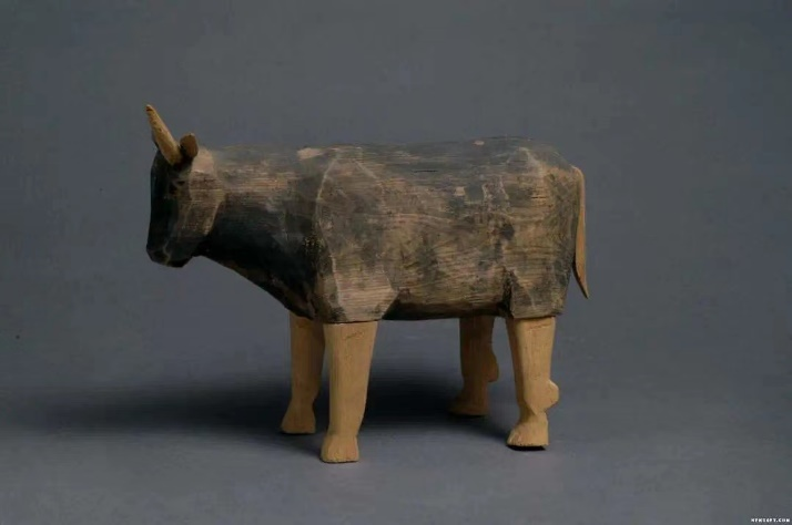 大家好,今天为大家分享的是汉代漆木器,墨绘木牛。木质,头部呈直筒形,两耳呈八字形竖起,墨绘两眼,嘴宽。躯干浑圆健硕,通体墨绘。出土于武威市新华乡磨嘴子。为国家三级文物,现馆藏于武威市博物馆。