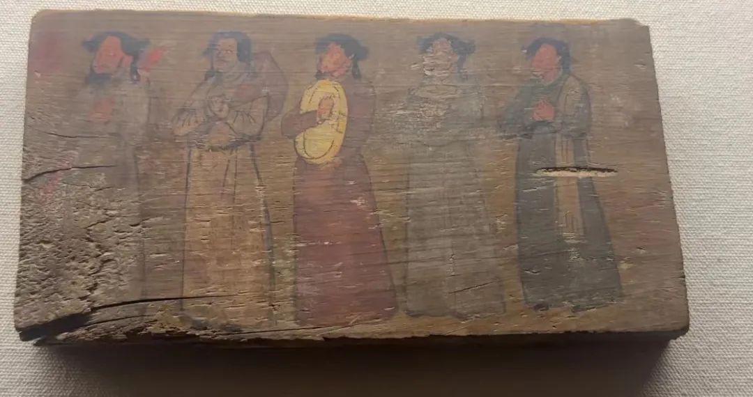 1977年在武威西郊林场出土了21块西夏木板画,其中五男侍木板画为国家一级文物,表现的是地位较低的西夏侍者的形象,木板画中的五男侍及马夫,均穿圆领或交领长衫,男子秃发,束腰带。西夏服饰具有严格的等级贵贱之分,如从颜色上来说,西夏庶民只能穿青绿色的衣服,官员才可以穿紫色和绯色衣装。西夏平民服饰大多以圆领窄袖袍为主,短襦短衫,腰束革带,下着小口长裤,将裤塞入靴中,或绑腿或卷起裤腿,便于劳作,足穿靴、麻鞋、草鞋,带毡冠或秃发,服色为蓝、绿两色。这是因为西夏服饰制度中有“民庶青绿,以别贵贱”的法律规定。西夏侍者因为地位不同,其服饰也有区别。地位低下的侍者他们或秃发,或戴巾帻,均穿圆领长衫或长裤,绑腿、麻鞋,也有的穿皂鞋。西夏服饰在唐宋基础上,吸收回鹘服饰特点,又融合本民族的传统特色,形成了丰富多彩又独具特色的西夏服饰文化。