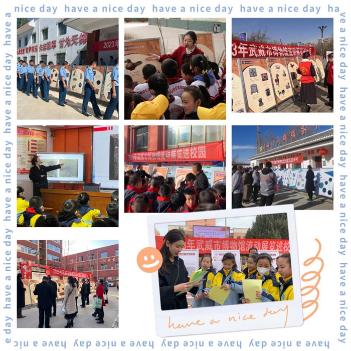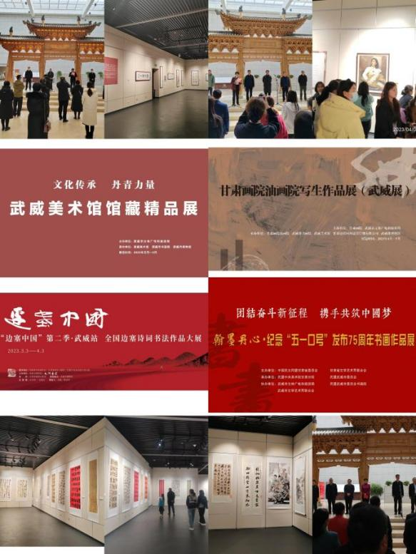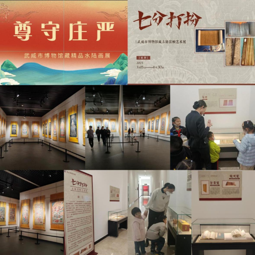 《尊守庄严——武威市博物馆藏精品水陆画展》(1月20日—4月20日),享誉“可移动的敦煌壁画”,出身民间,却富丽堂皇。儒释道题材广泛,形象百变,惟妙惟肖,不只是工笔重彩画技法精妙,难能可贵在于充满中国画写意精神。 《七分打扮——馆藏古籍装帧艺术展》(3月20日—12月30日)面向青少年学生举办,对应中学美术教材,展示古籍装帧艺术,知识性、趣味性、实践性、教育性一体。 《塔映灯辉——凉州会盟暨佛教文物艺术展》,与天祝藏族自治县博物馆原创策划,先后赴兰州市博物馆、张掖市博物馆,增添展品,加以文辞,遂成《塔影河声 吉祥千年——凉州会盟暨兰州武威佛教文物联展》(8月20日—10月20日)和《流光溢彩——凉州会盟暨武威与张掖佛教文物艺术联展》(10月24日—12月28日),再现了凉州会盟的历史情景,见证我国多民族统一融合的悠久历史,见证民族、宗教在国家社会经济发展中的积极作用,吸引各族人民牢固树立休戚与共、荣辱与共、生死与共、命运与共的中华民族共同体意识。 《大道攸归——五凉文化展》(1月16日—4月15日),五凉文化,生辉五凉古都。展览遴选甘、新、陕、宁四省六家文博单位代表五凉文化的百余组展品,系统梳理了五凉政权的发展脉络及其深远影响,勾勒出了一幅独具特色、鲜活生动的五凉文化历史画卷。材料翔实,内容丰富,格调热烈奔放,该展览成功入选2022年度文博行业100热门展览。 《国宝在武威——甘肃省博物馆藏武威出土文物精品展》(5月18日—8月17日),以甘肃省博物馆藏武威地区出土文物一展风采。皇娘娘台遗址的精美陶器和石器追述着天马故乡源远流长的史前文明;雷台汉墓的铜车马昭示了丝路雄镇扼襟控咽的军事地位;磨咀子墓群的陶器、木雕等描绘了绿洲明珠物阜民丰的社会风貌;旱滩坡墓群的汉简隐现着书城武威崇文尚德的千年底蕴;天梯山石窟等地代表多元文化的文物勾画了共同家园中各民族交流互鉴的历史长卷。众星捧月,5件国宝再回故里,述说武威——曾经五凉古都难以遮掩的光芒。 《翰墨寄情——郭克书画作品专题展》(6月9日—9月8日),缅怀郭克先生,六十多年教学、创作生涯与60幅画作相映成辉,中国画、素描、水彩画、书法、篆刻作品,一应俱全,反映了郭克先生委身教育、立名艺术的人生情操。 《传承优秀文化 赓续红色血脉——8+名人纪念馆联盟巡展》(7月22日月至8月21日),李大钊、宋庆龄、鲁迅、郭沫若、茅盾、老舍、徐悲鸿、梅兰芳、李四光、詹天佑、李叔同、康有为、红线女、梁启超,中国近代历史发展进程中永远闪耀的14颗星。行为世范,看一幅幅珍贵留影;言传玉律,读一本本倾情书籍。签名各具气质,书题独领风骚。中华民族的脊梁,人民敬仰! 《五彩霓裳 民族瑰宝——海南黎族传统织锦·服饰精品展》(9月15日——11月15日),本来天涯海角,而今近在咫尺,一份来自保亭黎族苗族自治县民族博物馆的礼。200多件传统黎族织锦、服饰,区分五大方言,技艺纺染织绣,尽显低纬度热带风情,溢美古民族文化传承。 寄情笔墨,书画逸兴。《文化传承 丹青力量——武威美术馆馆藏精品展》(1月13日—2月28日);《边塞中国“第二季(武威站)全国边塞诗词书法作品大展》(3月3日—4月3日);《甘肃画院油画院写生作品展》(4月6日—5月31日);《翰墨丹心•纪念“五一口号”发布75周年书画作品展》(4月24日—5月24日);《大河上下——甘肃书法院黄河文化主题创作邀请展》(5月6日—6月30日);《践行二十大笔墨书华章‘丝路情·长城魂’——河西五市书画联展》(9月13—10月15日);《江山问道——张鑫莉中国画展》(9月26日—10月27日)前后相继。侧耳边塞诗远,放眼陇上景好。黄河东流有遗篇,丝路西去展宏图。长城蜿蜒,民风淳朴。绿水青山,全然丹青绘就。 社区文化促进,流动展览先行。“卯兔”生肖文物图片,不一样的故事,讲给您听;馆藏精品文物图片,不一样的创造,展示您看;馆藏民族文献图片,不一样的设计,促进民族团结。进学校、进乡村、进社区、进军营、进企业,一路传播文化,一心服务社会。武博人的脚印遍布2023,不负芳华,走出了青春风采。 又是一年春好处,2024年,岁次甲辰,龙的传人过龙年,龙腾虎跃,喜气洋洋,武博人还与您同行!