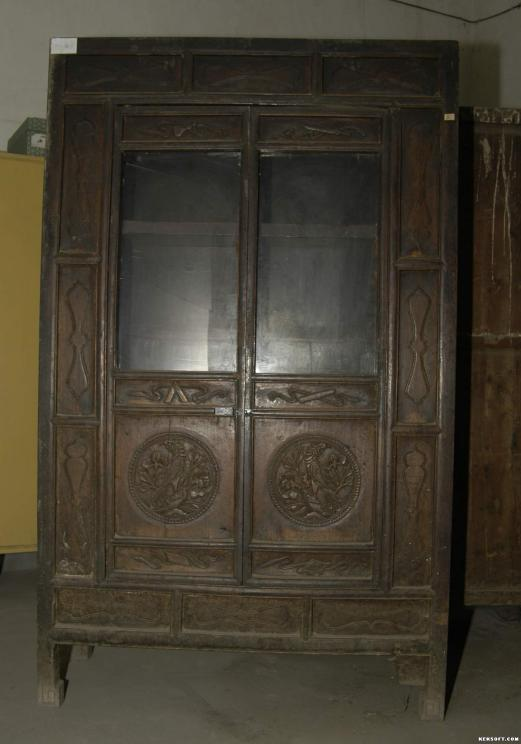 浮雕双凤八宝纹木柜