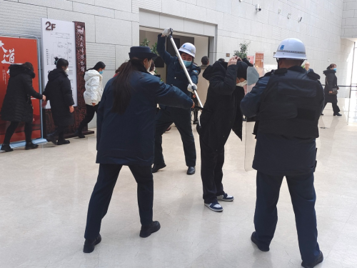 演练过程中,安保人员现场操作防暴叉、电警棍、盾牌等各类防暴器材。通过角色扮演反复演练,使职工熟练掌握了防暴器材的使用方法,锻炼了自救和互救的技能。