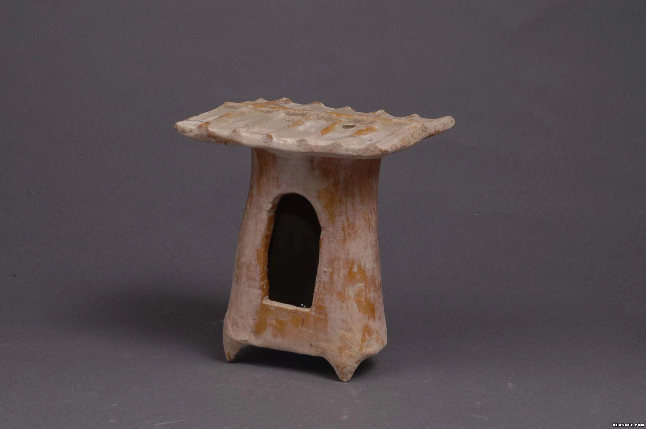 今天向大家分享黄釉陶仓,汉代陶器,红胎黄釉。起脊,身近似圆柱体,略扁,下大上小,椭圆形平底,正面有半圆形窗,四足。保存完整,出土于武威市新华乡磨嘴子,为国家二级文物,现馆藏于武威市博物馆。
