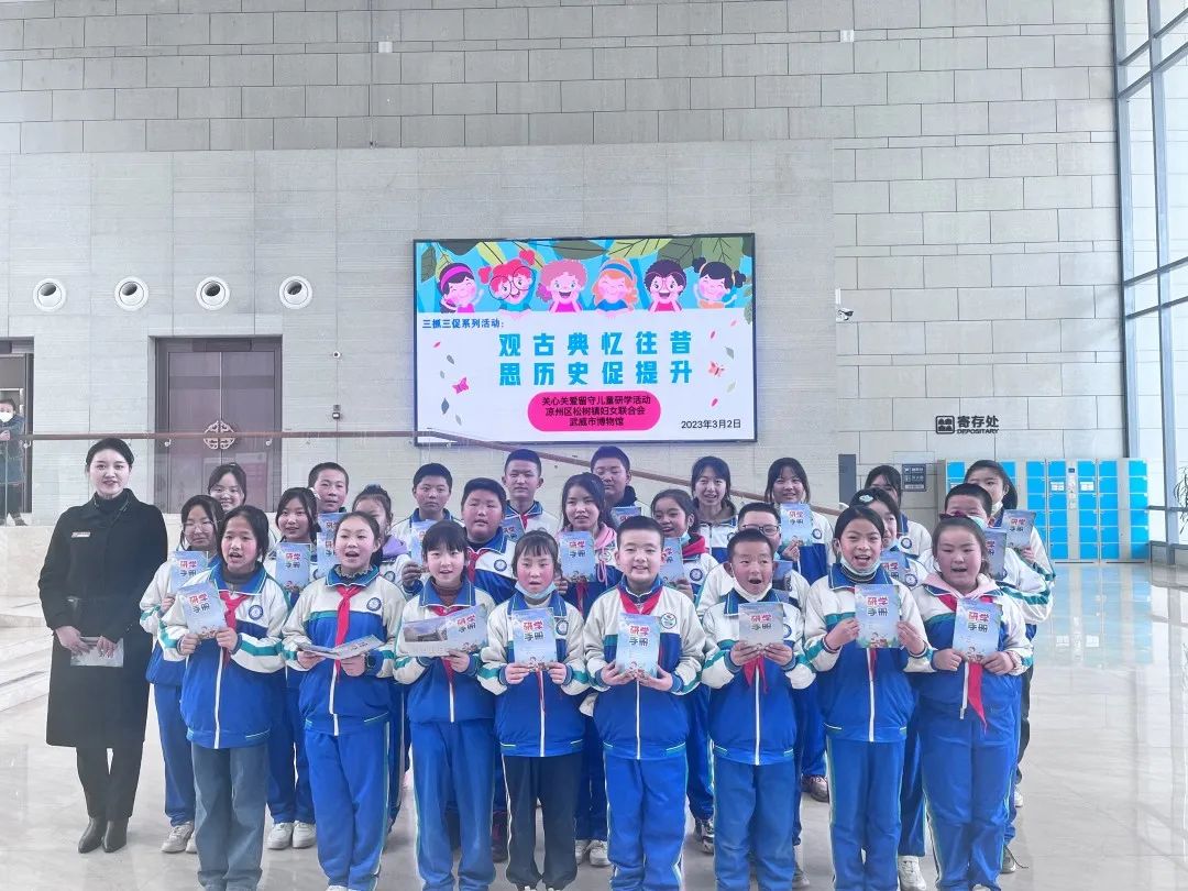 在2023年“三八”国际妇女节来临之际,为关心关爱留守儿童,让青少年更好地了解武威历史,培养学生对家乡的热爱之情。3月2日,武威市博物馆联合凉州区松树镇妇女联合会共同开展“观古典忆往昔 思历史促提升”研学活动。通过此次研学活动,让松树镇留守儿童体验在交流学习中开阔视野,切实做到了关心、关爱孩手们的身心健康,让他们在陶冶情操的同时,感知历史、启迪未来,提升文化自信,让优秀传统文化得到更好的传承。