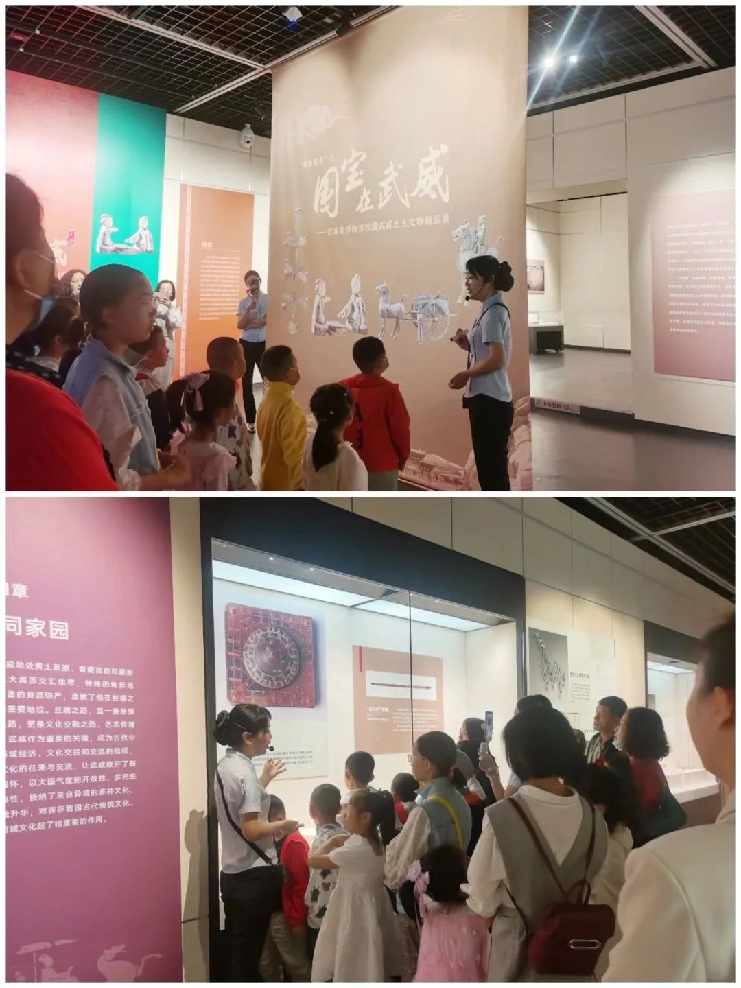 孩子们通过参观“国宝省亲之国宝在武威——甘肃省博物馆馆藏武威出土文物精品展”,聆听讲解员讲述国家一级文物汉代漆栻盘,学习两千年前的天文历法,了解古人如何计算时间。在以《有趣的钟表》为题的武博小课堂中,讲解员为孩子们普及了古代的天文常识和钟表时针、分针的命名及运转规律,引导他们珍惜时间、遵守时间的良好习惯。在DIY卡通挂钟环节,孩子们自己动手一边粘贴表盘,点缀彩钻,一边插入机芯、扣上时针,不一会儿,一个个漂亮又精致的卡通挂钟就呈现在我们面前啦。活动最后,孩子们和自己的作品拍照合影,一场有趣、好玩的时光之旅落下了帷幕。