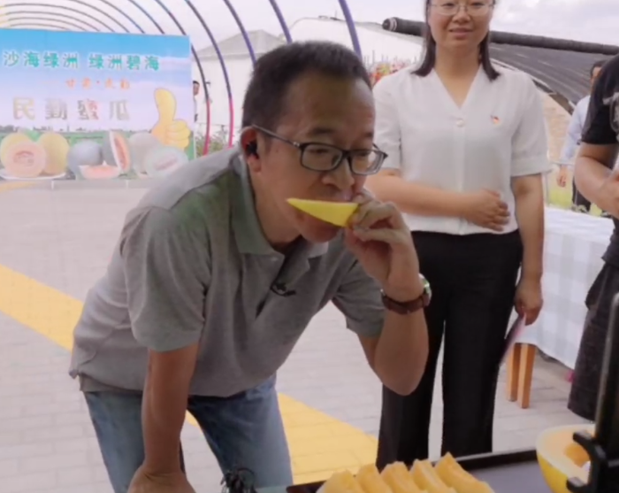 后来在东方甄选直播间,董宇辉讲述俞敏洪老师为武威民勤就地带货的故事!致敬了民勤人伟大的坚守,又一次推介了民勤蜜瓜。