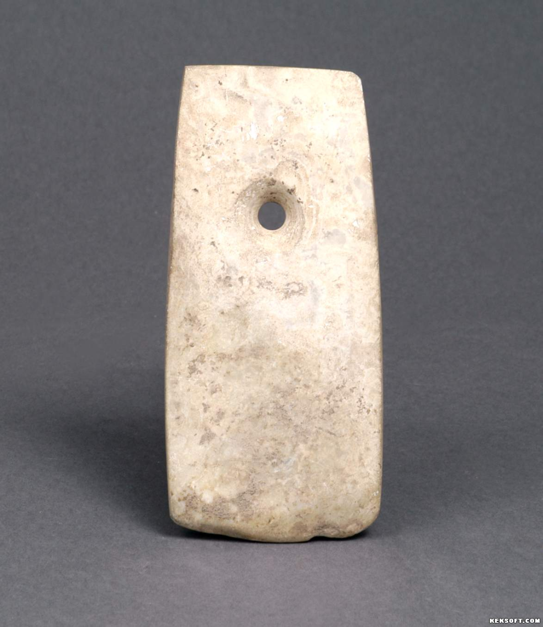 大家好,今天为大家分享的是齐家文化石斧。质地细腻,刃呈弧形略宽,斧背略窄,有圆孔,双面钻磨,有土沁色。为国家三级文物,现馆藏于武威市博物馆。