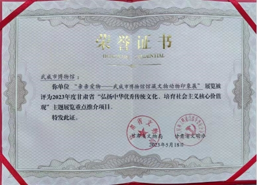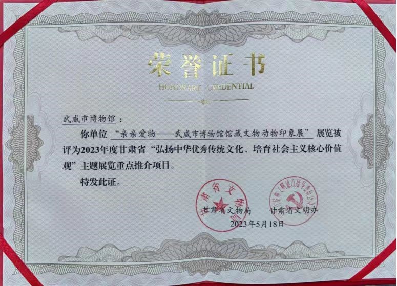 2023年,市博物馆共举办临时展览16个,并做到线上线下同步展出。策划举办“七分打扮——古籍装帧艺术展”等原创展览2个;引进“五彩霓裳 民族瑰宝——海南黎族传统织锦·服饰精品展”等展览9个;联合举办了“国宝在武威——甘肃省博物馆藏武威出土文物精品展”、“大道攸归:五凉文化展”等展览3个;对外推出“塔映灯辉——凉州会盟专题文物展”先后赴甘肃兰州、张掖等地展出。结合办展实际,制定了《武威市博物馆临时展览管理办法》,进一步完善临展举办体制机制,助推策展能力提升。其中,原创展览“亲亲爱物——武威市博物馆藏文物动物印象展”被评为2023年度甘肃省“弘扬中华优秀传统文化、培育社会主义核心价值观”主题展览重点推介项目。