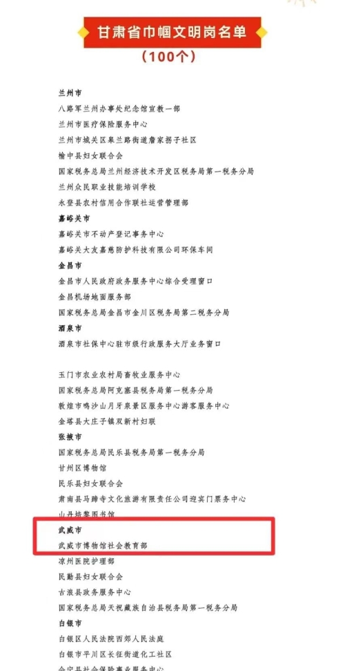 扎实开展“三抓三促”行动,持续提升干部队伍能力素质,开展“岗位大练兵、业务大比武”活动,组织讲解员参加市级、省级专业讲解等技能大赛,获得省、市级荣誉6项。制定印发《武威市博物馆讲解员绩效工资考核实施管理办法》,并组织全体讲解员赴省博、省简牍馆等兄弟馆参观交流、培训学习,不断提升服务质量和水平;开展志愿讲解、云端研学等志愿服务活动183次,累计服务时长1632小时。其中,武威市博物馆“流动博物馆”志愿服务项目被评为武威市年度最佳志愿者服务项目。三是邀请多位专家学者举办学术交流活动4期,本年度内发表论文2篇,积极申报省级课题2项,出版了《河西都会 天马故乡——武威历史文物精品图集》;进一步挖掘馆藏文物特色,丰富文创产品种类,开发上新八鸟朝阳巧克力、吐谷浑系列徽章、凉州故事系列莲花纹小方巾等产品近20款,增加游客的体验感,使文物“活”起来。