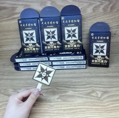 2022年12月,武威市博物馆上市的八鸟朝阳文创巧克力,因包装上印有八鸟朝阳彩绘画像砖的元素图,显得新颖独特。这件产品的设计灵感来源于武威市博物馆馆藏国家二级文物八鸟朝阳彩绘画像砖,自上市以来,火速成为好评如潮的“破圈”网红产品。武威市博物馆副馆长杨瑞说,博物馆文创产品在开发上尝试增加视觉、味觉等感官体验,同时也要迎合消费者的打卡需求。