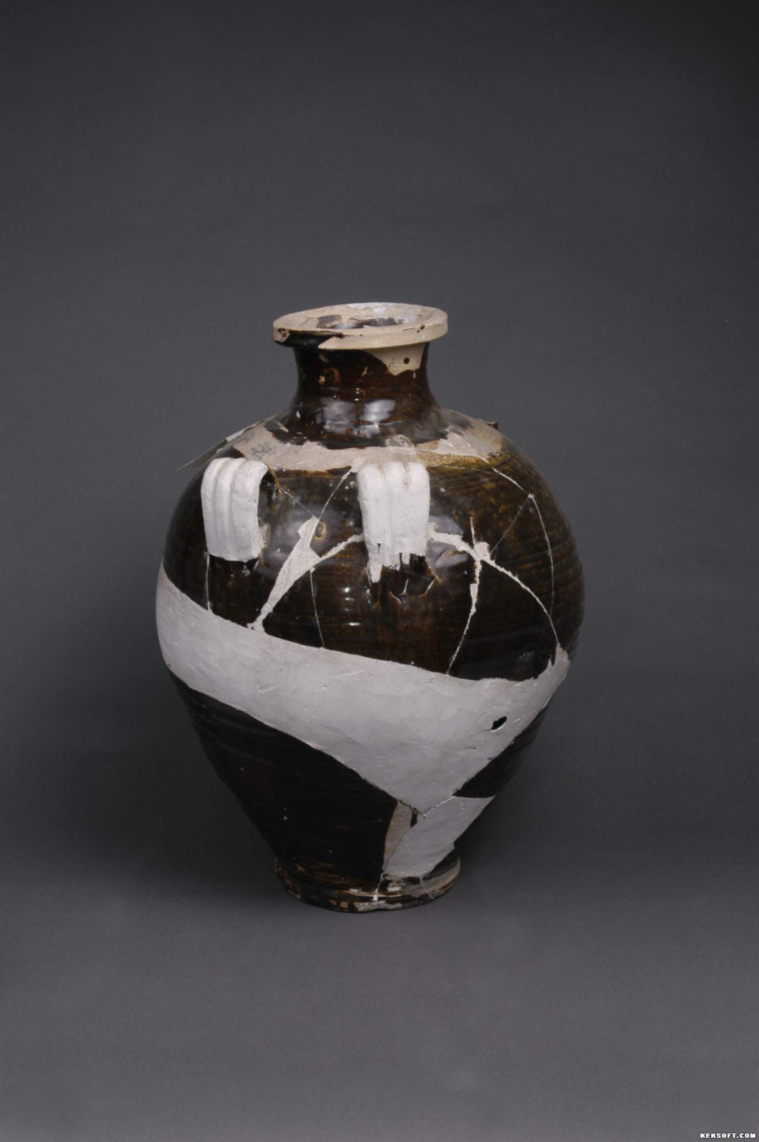 今天为大家分享的是西夏瓷器——四系褐釉瓷罐。1991年8月甘肃武威古城塔儿湾出土,侈口,方唇,束颈,圆肩,肩上四宽带耳,深圆腹,腹下部内收,圈足,平底。灰白胎褐釉,口沿、颈部不施釉,肩部一圈刮釉,上墨书“郭善”二字。为国家三级文物,现馆藏于武威市博物馆。