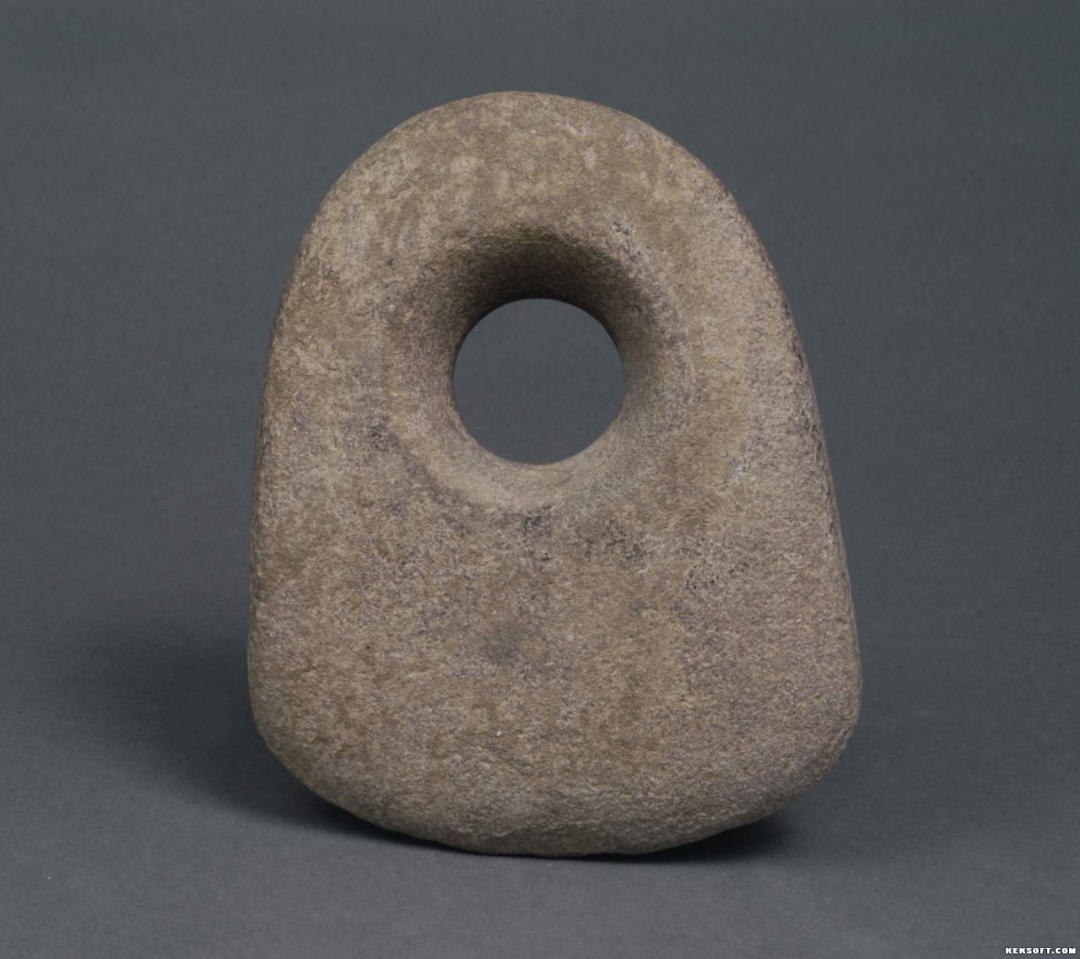 今天为大家分享的是新石器时代石锄。1987年甘肃古浪朵家梁万家坟出土。砂石质。马蹄形,刃部弧形,锄背半圆形,靠近背部钻孔,双面钻成,打磨细致,石质粗糙。为国家三级文物,现馆藏于武威市博物馆。