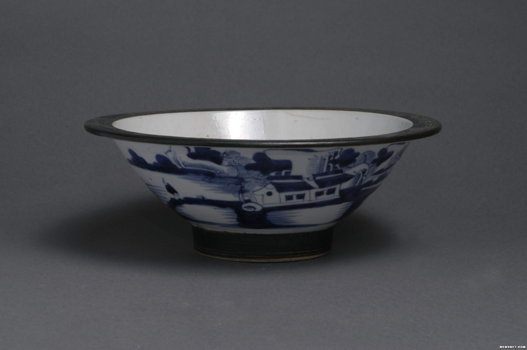 今天为大家分享的是清代瓷器——“成化款”青花瓷碗。1992年1月28日甘肃金昌双湾出土,盘口,宽平沿,弧腹,圈足。宽平沿上线刻一圈回纹,胫部两圈弦纹,底两圈线刻弦纹,正中线刻“成化年制”四字;平沿上部、圈足黑釉。为国家三级文物,现馆藏于武威市博物馆。