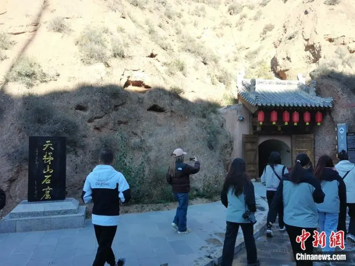 资料图:位于甘肃武威市凉州区境内的天梯山石窟吸引游人参观。田鹏鹤 摄