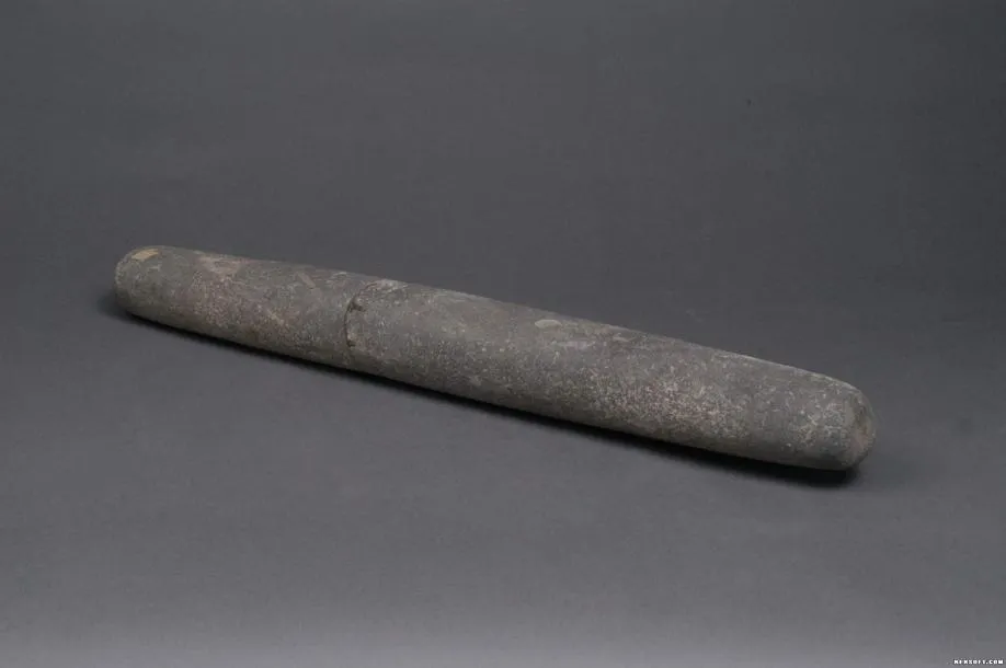 大家好,今天给大家介绍的是新石器时代石器——石杵。青石质,长条棒锤形,中间稍粗,两端稍细,断粘处有一直径5厘米的凹陷。现馆藏于武威市博物馆,为国家三级文物。
