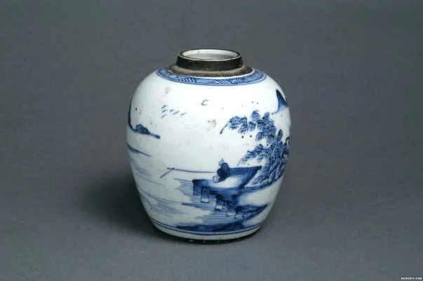 清康熙青花垂钓图瓷罐