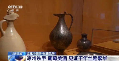 甘肃省文物考古研究所研究馆员 刘兵兵:从这个胡瓶的形制看,应该是来自西域的粟特人生产的。粟特人是丝绸之路贸易上的重要的胡商之一,像这个胡瓶还有白葡萄酒,集中出现在武威地区,它是丝绸之路贸易上的一个重要见证。