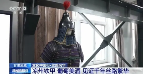 总台央视记者 张芸:在吐谷浑慕容智墓出土了一整套的铁甲胄,它是由将近2500片大小不同的铁甲片组成的。在唐代丝绸之路边关重镇出土的这一套盔甲,当年是用丝线把它们编缀在一起的。不仅如此,这套20公斤的盔甲,它的内衬也是由丝绸做成的。