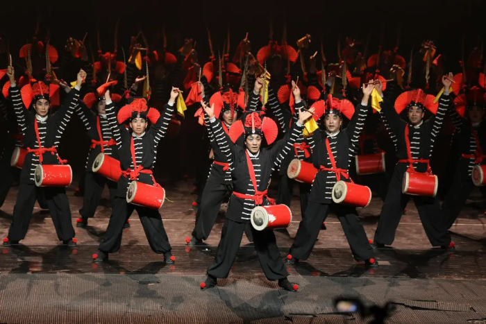 黑衣、黑裤、黑靴,表演者身背牛皮长鼓,手执枣木鼓槌,在隆隆鼓声中击鼓起舞。忽而如雁翎般展开,忽而如长蛇般疾冲,忽而旋走太极,忽而列成方阵,气势磅礴的凉州攻鼓子,舞出凉州儿女精气神。