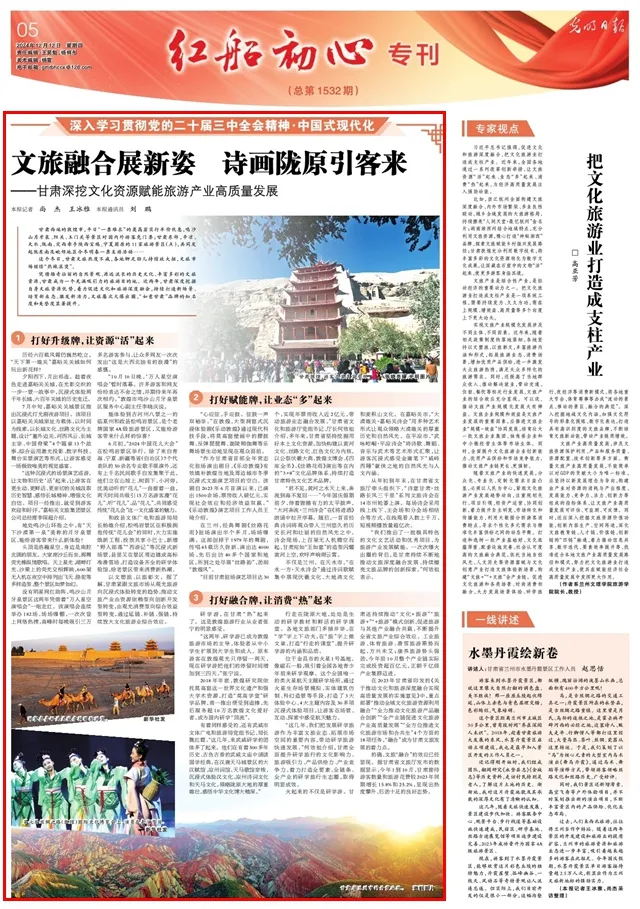 在2023年甘肃省印发的《关于推动文化和旅游深度融合实现高质量发展的实施意见》中,重点部署“推动全域文化旅游资源利用融合”“全力推动文化旅游产品融合创新”“全产业链促进文化旅游产业高质量发展”“全方位推进文化旅游市场和合共生”4个方面的18项任务,“融合”成为甘肃文旅发展的着力点。