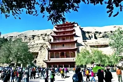 甘肃敦煌,游客在莫高窟参观。张晓亮摄/光明图片