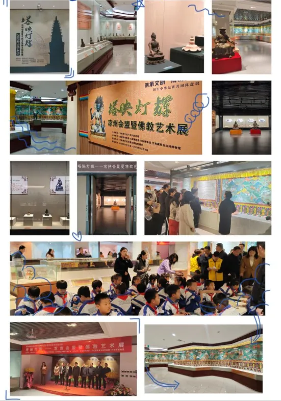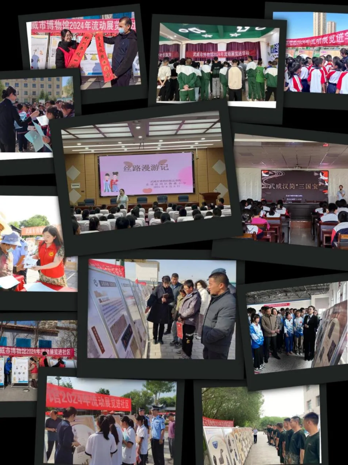 普洱岁月 古道春秋——普洱茶马文化风情展(2024.1.10—3.15),从普洱来。一边相思“彩云之南”的美丽,一边观赏茶马文化的独特。映入眼帘的茶叶标本、普洱茶产品、马身器物、马帮用品、茶马古道资料、历史图片,无不载着令人遐想的故事,见证茶马古道物资流通的时代意义。 掌中珍玩——武汉博物馆馆藏鼻烟壶精品展(2024.1.15—5.15)陈列的百余件鼻烟壶,自清代绵延至民国,仿如岁月的精灵,诉说着武汉往昔人民物质与精神世界的斑斓盛景。娇小玲珑的鼻烟壶,集书画之韵、雕刻之精、镶嵌之巧等工艺于方寸之间。材质多样,造型百态,更有名家妙笔绘就的精品隐匿其中,引领广大观者踏入鼻烟壶那迷人的精彩天地,去领略那独属于掌中珍玩的无尽风华与韵致。 触目皆琳琅——甘肃古代玉器特展(2024.5.10—8.10),是2023年度甘肃省“弘扬中华优秀传统文化、培育社会主义核心价值观”主题展览重点推介项目,载誉而至。以时间为丝线,串起古代玉器从史前至清与民国的悠长脉络。细致梳理各时期玉器的造型百态、纹饰密语、用途幽微、工艺绝巧,以甘肃这一文化厚土为独特视角,铺展中国古代玉器波澜壮阔的发展长卷,令观者无不沉醉于这玉韵华章之中。 丝路要塞 西陲雄风——酒泉长城专题展(2024.7.25—10.20)仿若一场历史与现代的激昂对话,“万里长城永不倒”,这豪迈的旋律,恰似展览的精神号角。酒泉市博物馆与我馆携手,怀着对历史文化的敬畏与传承之心,让守护酒泉、武威及丝绸之路千年的长城遗迹,自沉睡的史料与文献中苏醒。展览聚焦汉代与明代长城烽燧遗址,它们于酒泉、武威大地傲然屹立千年,如同一把文化的火炬,点燃人们亲历长城、守护长城的热忱渴望,使每一位观者都能深切感受到长城文化的磅礴伟力与深远意义。 旷野牧歌——沙井文化发现100周年纪念展(2024.9.15—12.20),在河西走廊东段的金昌与武威大地上,一颗遗落千年的明珠,因为瑞典考古学家安特生在 1924 年的那次邂逅,便熠熠生辉。如今,为纪念这意义非凡的百年发现之旅,金昌市博物馆携手我馆,以及金昌市金川区博物馆、永昌县博物馆、民勤县博物馆,共同奏响一场文化的盛歌。带我们领略其文物背后深邃的价值内涵,细数那百年间的研究硕果,让沙井文化从岁月深处走向更广阔的天地,让它的影响力如涟漪般扩散。 馆内联合办展:“丝路丹青 魅力武威”甘肃省版画作品联展(2023.12—2024.3)、心迹——甘肃画院国画院写生作品展(2024.4—5) 、守正创新——敦煌遗书临创学术邀请展 (2024.5—6)、月出凉州 武威诗会“凉州词”主题书画展 (2024.5—6)、同心迎华诞 奋进新征程——武威市政协庆祝新中国成立75周年暨人民政协成立 75 周年书画摄影展 (2024.9.27—11.20)、庆祝中华人民共和国成立75周年武威市“奋进新征程、建功新时代”书法、美术、摄影作品展(2024.9.19—10.20)、“歌唱祖国”武威市硬笔书法大赛作品展 (2024.11—12)素纸铺陈,丹青妙笔轻点,勾勒盛世盛景;徽墨研磨,翰苑华章徐书,传颂伟业丰功。通过这些主题书画展的艺术笔触与墨韵,将进一步激发全市干部群众牢记党恩、歌颂党情、干事创业的巨大热情。在这强国建设的宏伟蓝图里,于民族复兴的伟大新征程上,我们必将受此激励而奋勇前行,以无畏的勇气与坚定的决心披荆斩棘,再度铸就辉煌佳绩,书写属于我们的荣耀篇章。 我馆推出4个原创性主题展览,分赴西宁、普洱、武汉及省内定西、张掖、酒泉、白银、甘南州等城市,让武博的文物“活起来”“走出去”。 塔映灯辉——凉州会盟暨佛教文物艺术展,先后赴高台县博物馆(2024.1.8—3.27)、白银市博物馆(2024.3.29—6.10)、定西市博物馆(2024.6.11—9.9)、甘南州博物馆(2024.9.10—12.9)、临洮县博物馆(2024.12.12—2025.2.17),再现了凉州会盟的历史情景,见证我国多民族统一融合的悠久历史,见证民族、宗教在国家社会经济发展中的积极作用,吸引各族人民牢固树立休戚与共、荣辱与共、生死与共、命运与共的中华民族共同体意识。 文化印迹 民族之光——武威市博物馆藏古代民族文献展先后赴靖远县博物馆(2023.12.19—2024.2.29)、景泰县博物馆(2024.3.5—4.5)、皋兰县博物馆(2024.4.10—6.17),展览以馆藏文献的不同形式分为“木版雕刻,其志凿凿”“古籍载道,其华灼灼”“经典传承,其文振振”“刻石永恒,其风扬扬”四个单元,展出了我馆馆藏的木雕版、古籍善本、各类大藏经以及墓志拓片等六十余件特色藏品,展示了我国历代各族人民在中华民族文化发展史上贡献的智慧和创造,展现了各民族和睦相处、融合发展、共同繁荣的景象。 可流动的“敦煌壁画”——甘肃武威水陆画艺术展先后赴西宁市博物馆(2024.4.15—6.17)、普洱市博物馆(2024.5.26—7.30)、酒泉市博物馆(2024.7.20—9.20),展览展品画作题材多样,设色丰富独特,行笔劲健凝练,场景宏阔繁复,是生活在古代苦难现实中的下层劳动者思想和精神寄托的真实写照。在绘画内容、艺术手法上表现出对敦煌壁画的继承与创新,有“可流动的敦煌壁画”之称。 共情 共鸣——武威市博物馆藏民族文献展先后赴武汉博物馆(2024.8.15—9.27)、古浪县博物馆(2024.10.25—11.25),历史上武威生活的各民族,作为中华民族多元一体进程中重要成员,在我国多民族国家的发展中的伟大贡献跃然展厅。王杖诏书令册简、西夏文《维摩诘所说经》泥活字印本、藏文大