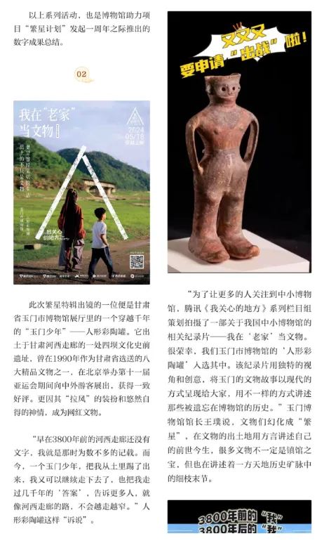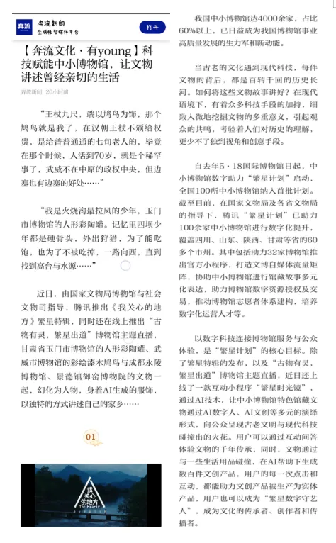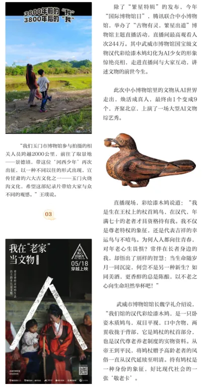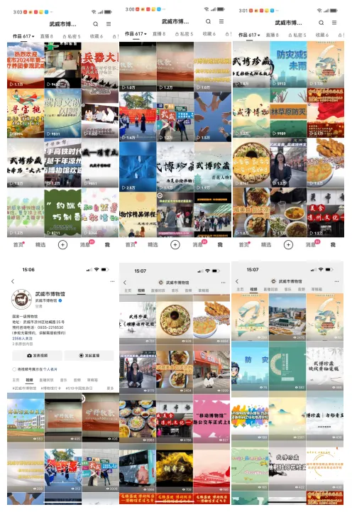 武威市博物馆积极贯彻文化惠民理念,以创新多元的线下宣传活动,生动展现武威历史文化的魅力。宣传册、语音导览、打卡盖章、拍照打卡地、主题公交等特色形式,吸引了众多游客走进博物馆领略文化的丰富内涵,成为文化传播的新亮点。 精美的宣传册,以图文并茂的形式浓缩了馆内珍贵文物与历史脉络,为游客提供便携的文博导览,让游客在指尖翻阅间感受武威深厚的文化底蕴,成为他们了解博物馆的第一扇窗口。 便捷的语音导览服务,借助现代科技让文物“开口说话”。观众只需扫描二维码,便能聆听专业而生动的讲解,让历史变得触手可及,无论在馆内还是在“云端”,您都能听到武博的声音。 打卡盖章是来博物馆不可缺少的环节,为博物馆之旅增添了互动性与趣味性。精心设计的特色印章,吸引了大批游客踊跃参与。集章过程不仅成为探索博物馆的独特动力,更让游客在互动中加深对文物与文化的记忆,成为他们带走的一份独特“文化纪念品”。盖章本上一个个精美的印记,记录下的是游客与博物馆的美好邂逅,也见证了文化传播的新形式。 拍照打卡地的设置,则巧妙地将文化与美学相结合。馆内独具匠心打造的多处古风场景、文化背景墙和人型立牌,为游客提供了绝佳的拍照背景。这些打卡照片不仅成为个人社交媒体上的亮点分享,更在无形中扩大了博物馆的文化影响力与知名度,吸引更多人前来感受其独特魅力。 武博主题公交车盛装登场,使馆藏瑰宝在城市中流动起来变身成为“移动的博物馆”穿梭于大街小巷,自然而然地融入广大市民的日常生活之中,既拓展了文化传播的范围,也成为城市一道可移动的人文风景线。 线上活动:精彩纷呈 武威市博物馆立足本馆特色,积极顺应公众文化需求,依托丰富馆藏资源,多平台进行线上宣传展示和科普教育。 新媒体推广平台内容丰富、信息及时准确,成为连接观众与博物馆的纽带。“云端武博 线上展览”、“武博珍藏”、“把武博讲给你听”、“武博文创”、“跟着节气游武博”等宣传板块,将图片、文字、音频、视频相结合,全面展示藏品和展览,持之以恒为观众呈上便捷贴心的文博线上服务。近一年我馆拍摄制作《武博珍藏》――周周讲文物系列视频50余期,同时在抖音、快手、视频号等平台先后开展“龙腾盛世 博动陇原”、“网络中国节”、“我们的节日”、“新春新展启幕 共享文化盛宴”等主题线上视频40余个,直播20余场,累计在线观看人数2000万人次;携手多家媒体巨擘,连袂演绎直播华章,如4月26日与“大咖说”团队携手的“追忆古凉过往 解读河西历史”大型文博直播,观者如潮,达4.7万人次;5月16日参与腾讯直播活动“古物有灵 繁星出道”,人气爆棚,在线观看人数飙升至244万;9月5日抖音平台的“我是策展人 抖in博物馆”直播,更是吸睛无数,在线观看人次跃至44.3万高位。 2024年抖音播放总量为239万余次,点赞总量9.3万余次,单个视频最高播放量18.2万次。快手号视频总播放量31.2万次,总点赞量8万余次,单个视频最高播放量23.7万次。微信视频号总播放量14.1万次,单个视频最高播放量2.5万次。 积极借势国家、省、市各级媒体磅礴之力,全方位拓展宣传辐射半径,全力提升武博知名度与文化影响力。尤其是在年上半年,我馆多次被央视、中国新闻网、新华社、中国文物报、中国甘肃网、甘肃日报、观澜新闻、甘肃省文化和旅游厅、甘肃广电总台等多家新媒体平台进行报道。其中被国家级媒体平台报道12次、央视报道4次、省级媒体平台报道24次、市级媒体平台报道23次。 多方媒体平台报道扩大了武威市博物馆的宣传力度,吸引更多观众关注武威市博物馆,各级各类媒体平台架起了文化传播与社会公众联系的桥梁,有助于公众更加便捷地获取文博信息和文化知识,让数字媒体赋能文化传播“扬帆出海”。 每一场线下活动的成功举办,每一次线上内容的精心推送,皆如岁月长河中奔腾翻涌的朵朵浪花,相互汇聚交融,凝聚成文化回响的磅礴力量,使得武威市博物馆在岁月的漫漫征程中,始终如一地以文化的熠熠清辉,温柔照亮世人探寻历史幽径、回溯文化本源的前行方向。 展望明日征程,武博定将秉持这份热忱与执着,深挖文化富矿,雕琢更具创意的宣传精品。我们笃信,随着宣传工作的持续深耕,武威市博物馆不仅是本地观众的精神原乡,更会成为四海宾朋的向往之地。期待2025年,岁月留痕化作基石,文化新声聚成洪流,交织共鸣,回响八方。