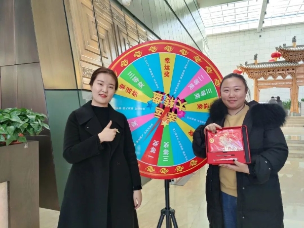 “幸运大转盘”吸引了很多观众的目光,在工作人员的介绍与协助下,前来参观的游客纷纷在朋友圈、抖音、微博等社交平台上打卡,并且号召亲朋好友为自己点赞助力。在本次活动中,我馆为中奖观众提供了免费单层讲解、定制龙年礼盒、武博小玩偶等龙年定制礼品,让观众在观展的同时也能集赞参与抽奖,赢得惊喜礼品。