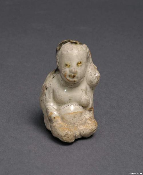 大家好,今天为大家介绍的是一件瓷器西夏瓷人。由甘肃武威祁连乡祁连村下河组刘茂成移交。跪姿,丫髻,面部丰腴,体态丰满。左手上举,右手扶膝。施白釉至腹部,五官及发均用褐釉勾画。人物形象憨态可鞠。为国家三级文物。