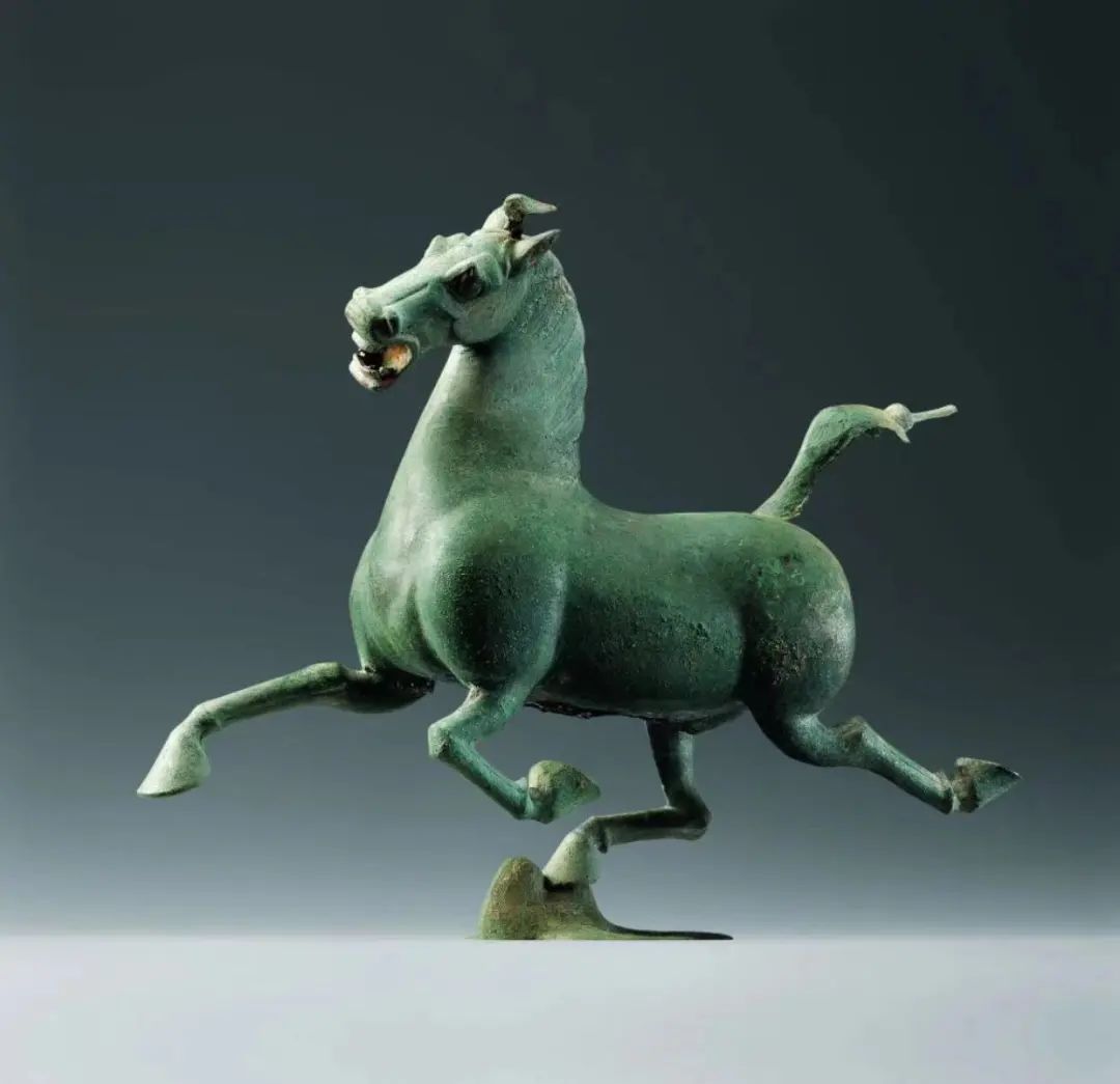 马儿如在空中飞驰,一足踏上飞鸟的刹那,飞鸟回首惊顾。细细观之,马的口、眼、鼻均张开,鬃毛和尾丝后扬,令人仿若听见马儿奔腾的嘶鸣和风啸声,静态的青铜器充满灵动之感。