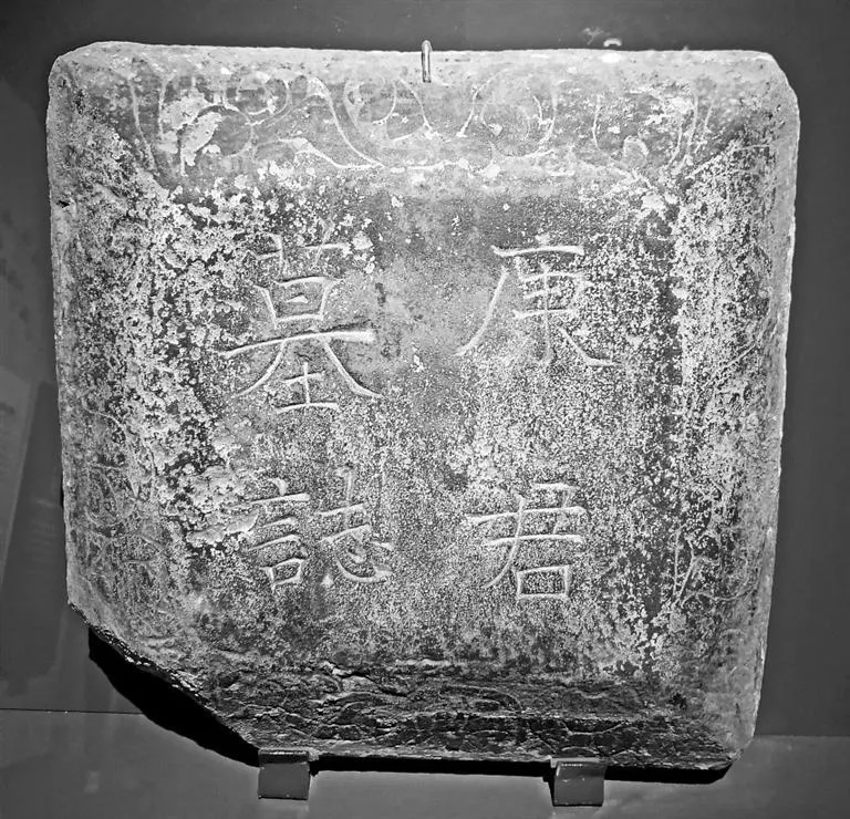 甘肃武威文庙存有一方墓志,灰砂岩石质,碑身、盖均呈正方形,底边长39厘米,中间阴刻楷书“康君墓志”。碑身边长40厘米,正文楷书13行,每行15—17字不等,字迹漫漶。其铭文在《陇右金石录》有收,如下:
