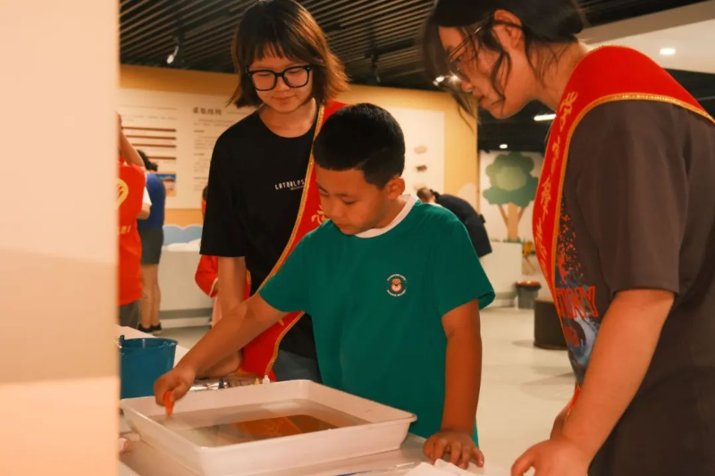 最令孩子们兴奋的莫过于那非遗水拓丝绸的奇妙体验。在这里,孩子们亲手触摸到历史的温度,感受到传统文化的魅力。通过参与水拓丝绸的制作过程,孩子们不仅领略到这项古老技艺的精湛与独特,更能在实践中成为丝绸之路文化的传承者,将这份宝贵的文化遗产继续发扬光大。