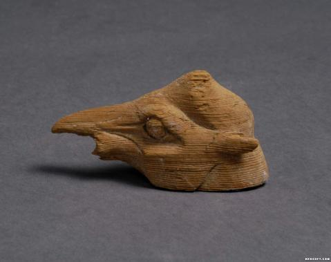 大家好,今天为大家介绍的是一件唐代漆木器木雕驼头。出土于甘肃武威南营青嘴喇嘛湾。松木质。头顶圆突,耳尖而小,眼睛圆鼓。右耳残缺,鼻嘴残,缺下颌。通长8厘米,宽4.5厘米。现馆藏于武威市博物馆,为国家三级文物。