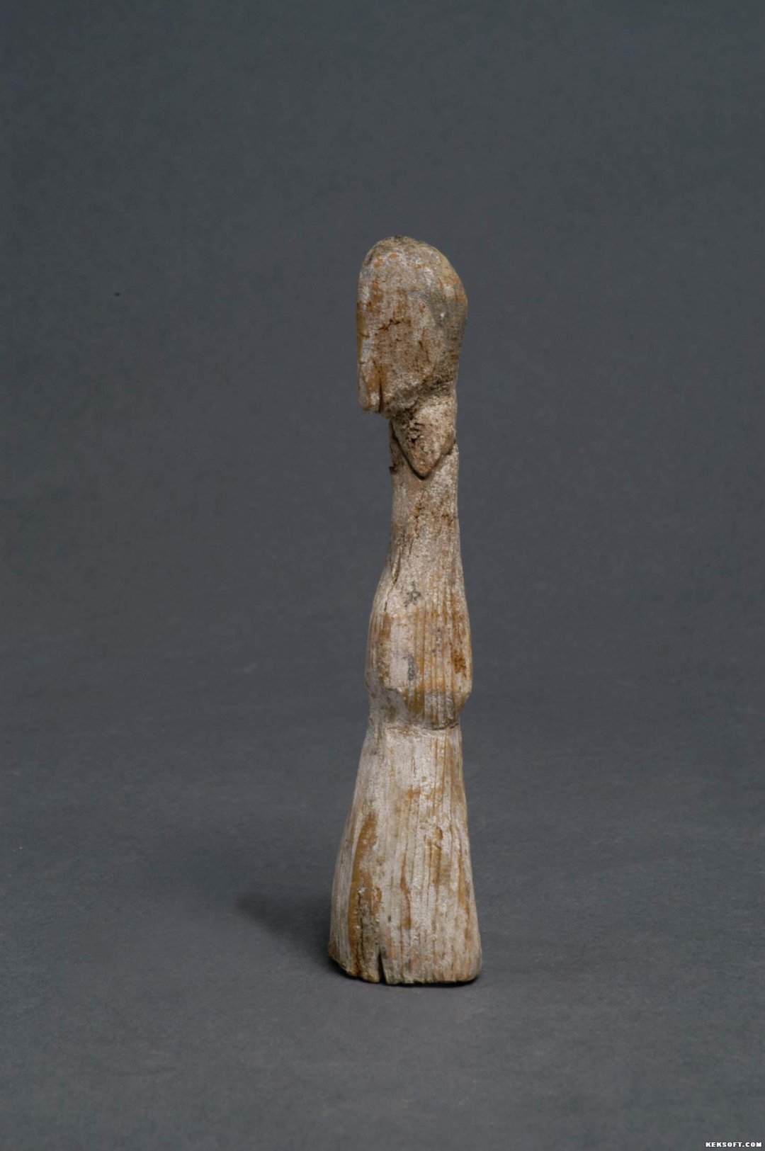 大家好,今天为大家介绍的是一件魏晋时期漆木器木雕彩绘男立俑。出土于甘肃武威柏树公社桥儿大队第五生产队。松木质。立姿,披发,长袍,袖手。全身白彩,发、五官、衣纹黑彩描饰。雕刻、描彩简洁、明快。通体朽裂,颈部断裂粘合。失描彩。通高15.3厘米,肩宽2.5厘米,为国家三级文物。