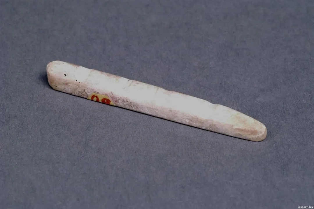 今天为大家分享石簪。唐代,石器。石质,白色,长条圆锥状,底面打磨平整,表面刻挖出四道凹槽。有少量浅黄土沁痕迹。为国家三级文物。现藏武威市博物馆。