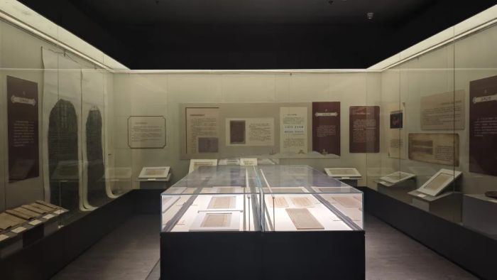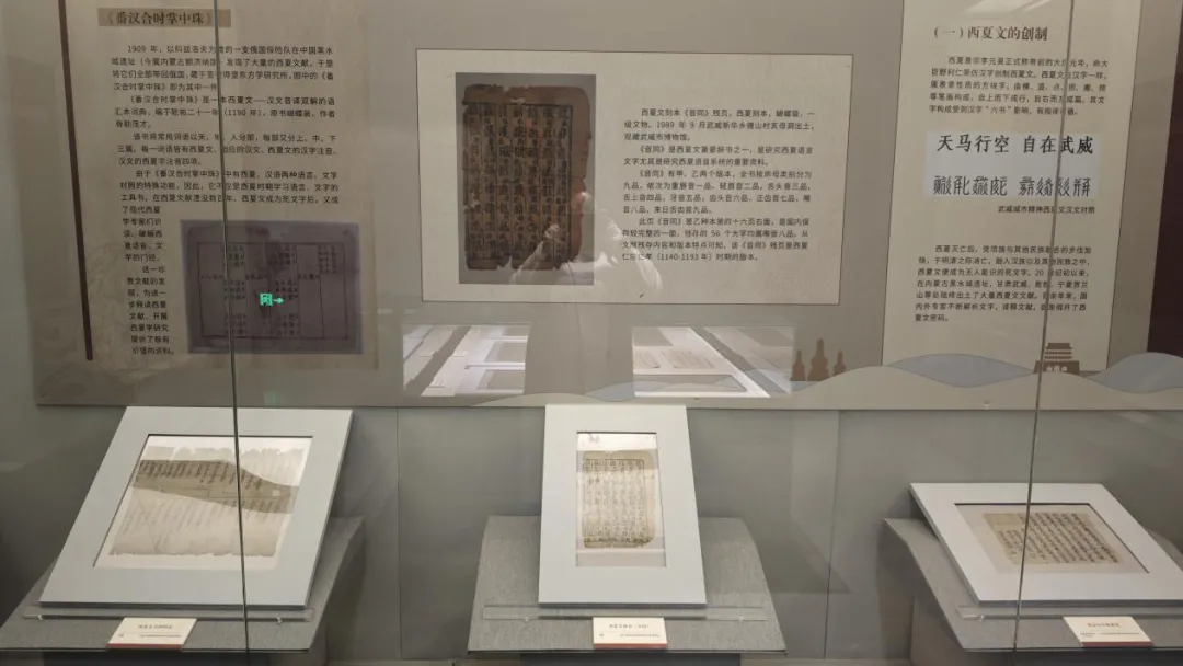 展览以中华民族多元一体演进过程为主线,遴选100套173件馆藏文献珍品,展品时间跨度从汉到民国,类别包括简牍、拓片、木板画、雕版、大藏经、古籍图书等,材质有纸、木、铜、石、绢各类,文字有汉、西夏、藏、回鹘文等,共分3个单元共12组展陈内容。第一单元“多元共处,相与有成”,通过落落晨星、繁星璀璨、众星拱月、星月交辉四组,介绍了历史上武威生活的各民族,显示出它们作为中华民族多元一体进程中“多元”的要素,推动了多民族国家的发展;第二单元“三交史话,共铸一体”,通过凉州会盟、汉夏合璧、凉州词话、唐吐和亲四组讲述了武威历史上各民族“三交”史,阐释多元如何成为一体,即各民族在政治上凝聚共识、文化上兼收并蓄、经济上相互依存、情感上相互亲近,最终交融汇聚成多元一体的中华民族;第三单元“典籍之光,耀古烁今”通过王杖诏书令册简、西夏文《维摩诘所说经》、藏文大藏经、汉文大藏经四组,展示馆藏历史文献中最具代表性的精华及近年来馆藏文献保护修复的成果,展示中华民族共同创造的优秀文化,推进古籍保护利用。