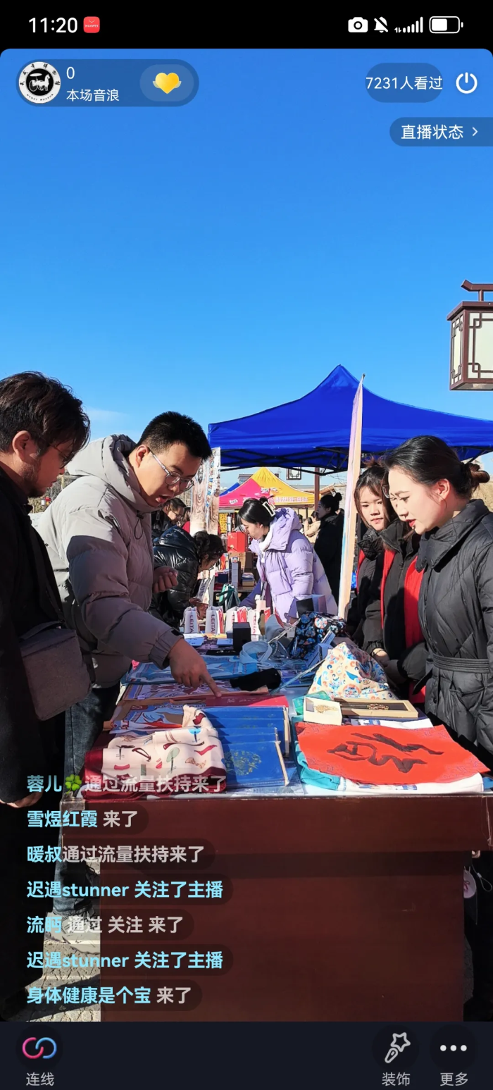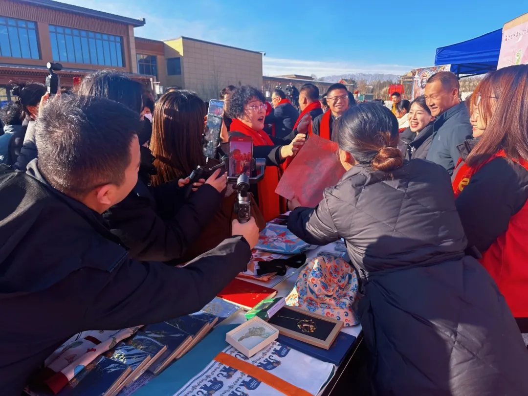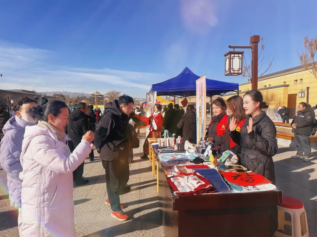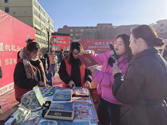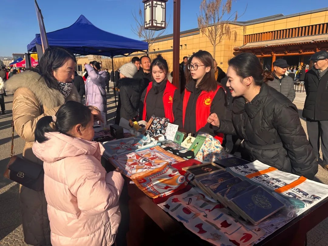 2025年1月19日上午10:30,龙门巷年货市集及公益性演出活动在凉州十七巷城墙遗址广场(龙门巷)盛大启动。武威市博物馆的文创产品在活动中精彩亮相,吸引了众多市民和游客的目光,同时我馆抖音官方平台对本次活动进行了同步直播。