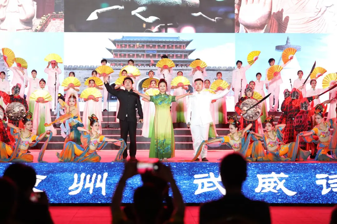 除了红色经典曲目,武威精心研磨打造《西凉乐舞》《凉州词》《天马行》《大漠深处有人家》等剧目,传播凉州文化,弘扬武威精神。除此之外,武威开发推出非遗研学旅行线路7条,推动非遗作品、节目创作创新,凉州贤孝《当代愚公“六老汉”》荣获文学奖提名进入牡丹奖终评,地域传统文化实现创造性转化创新性发展。