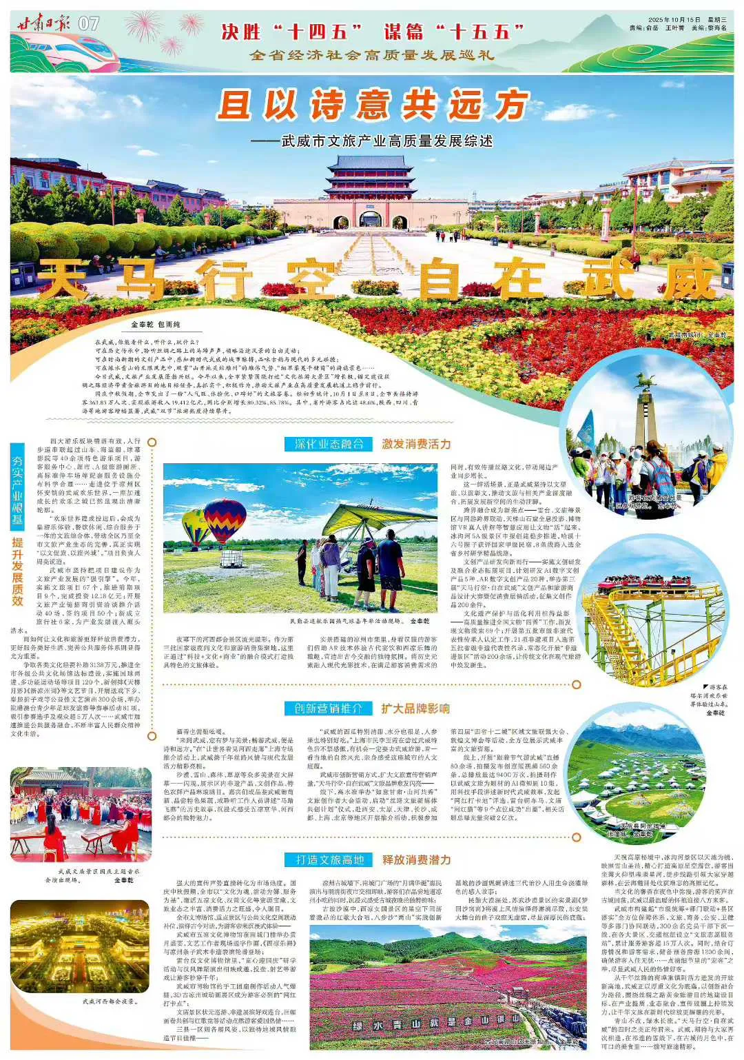 从千年丝路的商埠重镇到活力迸发的开放新高地,武威正以厚重文化为底蕴,以创新融合为路径,围绕丝绸之路黄金旅游目的地建设目标,在产业提质、业态融合、宣传破圈上持续发力,让千年文脉在新时代绽放更耀眼的光彩。