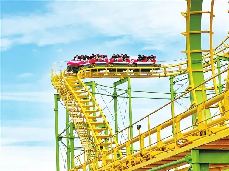 游客在塔儿湾欢乐世界体验过山车。金奉乾