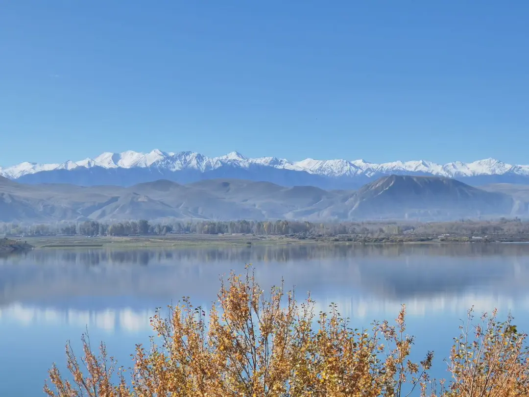 清晨驱车过武威而不入,径直向天梯山而去。山路蜿蜒如绸带,几经盘旋终于到达景区。黄羊河水库波光滟滟,澄澈的水面倒映着蓝天与两岸如龟背叠加的山峦,更远处是逶迤连绵的祁连山。