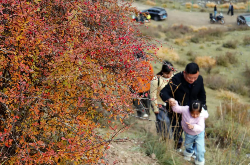 10月18日,古浪县古丰镇南泥沟山区,秋景如画,景色宜人,众多游人前来赏景打卡。
