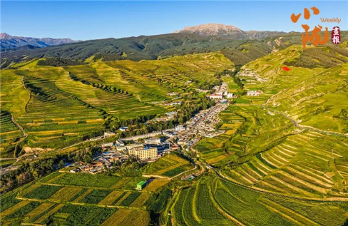 俯瞰那层层叠叠、高低错落的梯田,一种粗犷之美扑面而来。曲线蜿蜒如大地的指纹,把秋日的肌理揉得细腻。零星村庄嵌在田垄间,白墙黛瓦隐在黄绿交错里,每一眼都是藏在陇中深处的静谧。