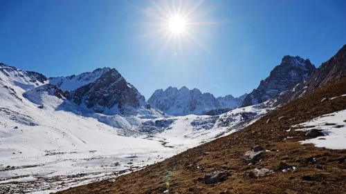 那散落其间的白牦牛,它们如洁白的珍珠,长毛拂雪,在寂静中缓缓踱步。风吹过原野,偶尔卷起冰面上的浮雪,如同为这片凝固的湖水系上一条飘动的哈达。站在这里,世界仿佛只剩下蓝与白两种颜色。白牦牛是这画卷中温顺的精灵,冰湖是沉睡的明镜,而你是这静谧中唯一醒着的灵魂。这片被冰雪净化的天地,终将化作你心中长久的宁静。