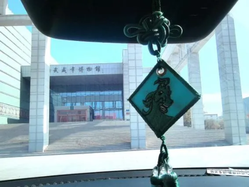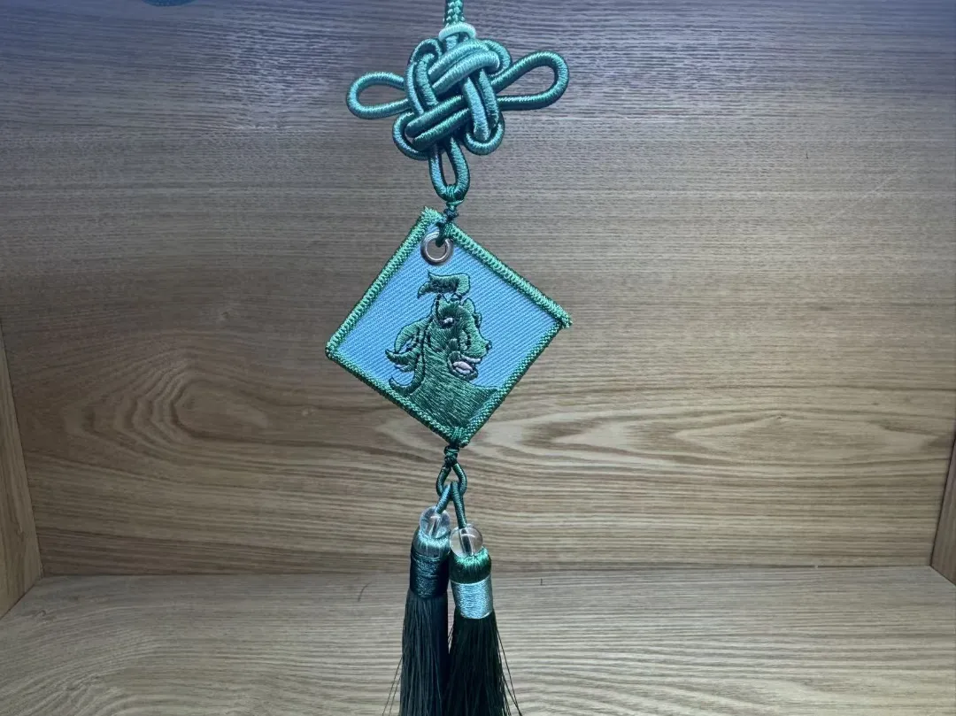 顶端的盘长结,取“连绵不绝”的传统寓意,绳结的交错纹路呼应着文物的对称美学;渐变墨绿流苏选用哑光织线,垂坠感里藏着中式器物的温润质感,随行车轻晃时,像把河西走廊的风,揉成了车厢里的细碎温柔。